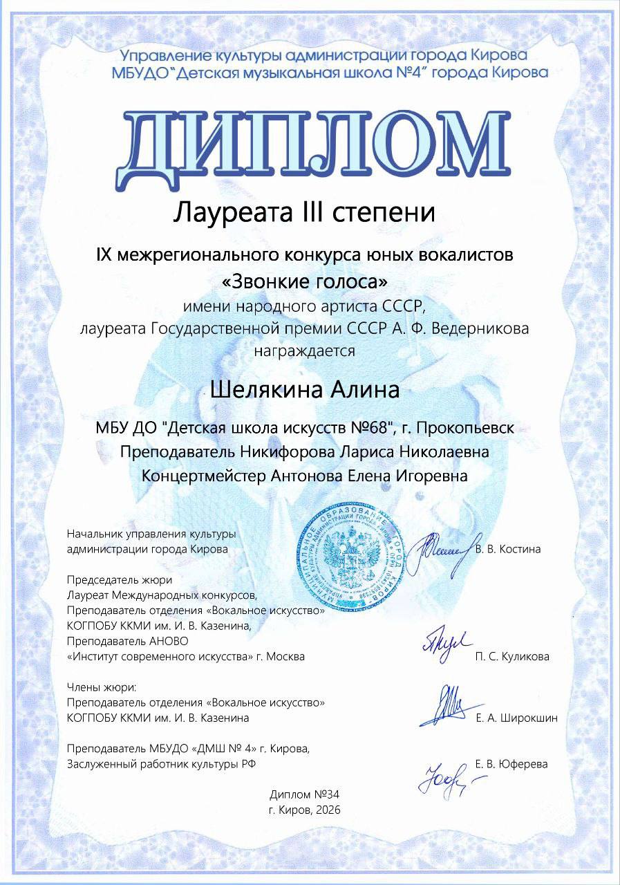 IX межрегиональный конкурс юных вокалистов «Звонкие голоса» имени народного артиста СССР А. Ф. Ведерникова, г. Киров.