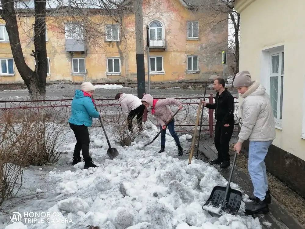 Приводим территорию в порядок от зимней снежной грязи.