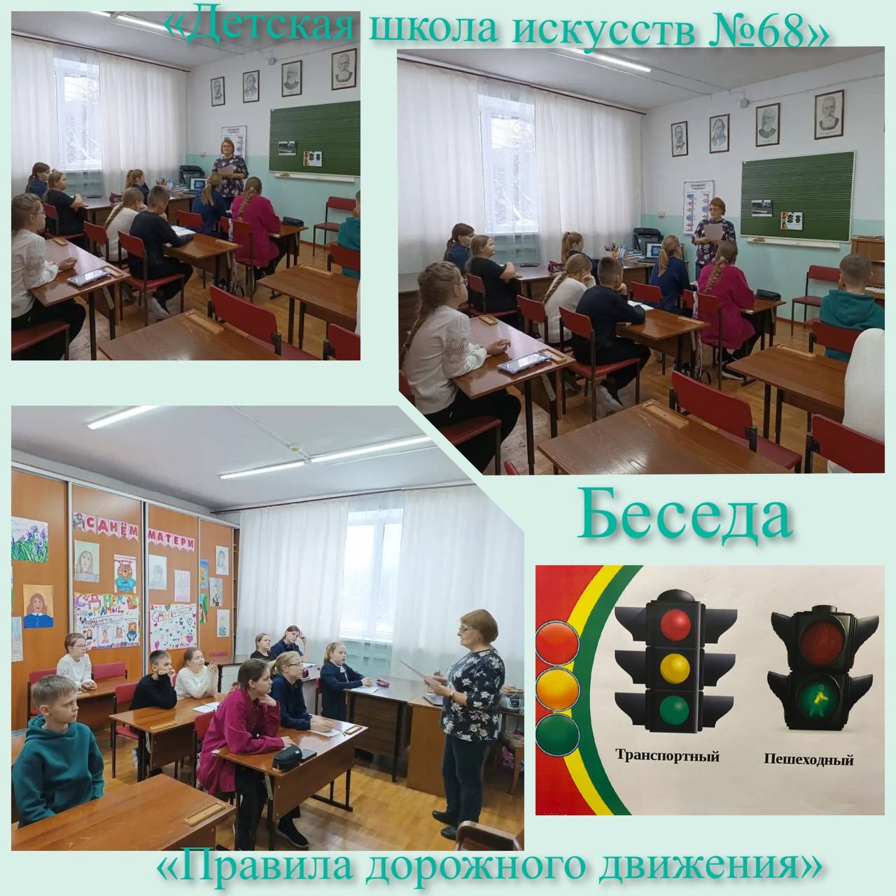 Сегодня в «Детской школе искусств №68» прошла беседа на тему: «Правила дорожного движения»