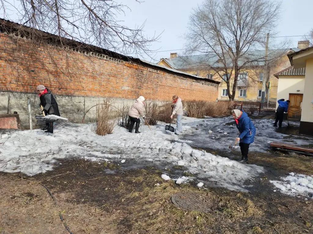 Продолжаем приводить свою территорию в порядок, борьба со снегом продолжается!