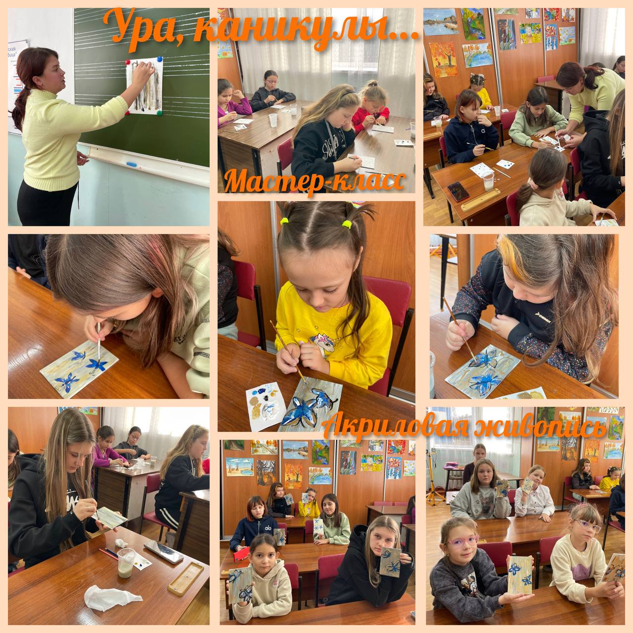Во время осенних каникул мы продолжаем заниматься любимым делом. Сегодня для детей проведен мастер-класс на тему «Акриловая живопись», учащиеся изготовили интересную поделку своими руками, провела мастер-класс преподаватель Решетникова Кристина Евгеньевна.