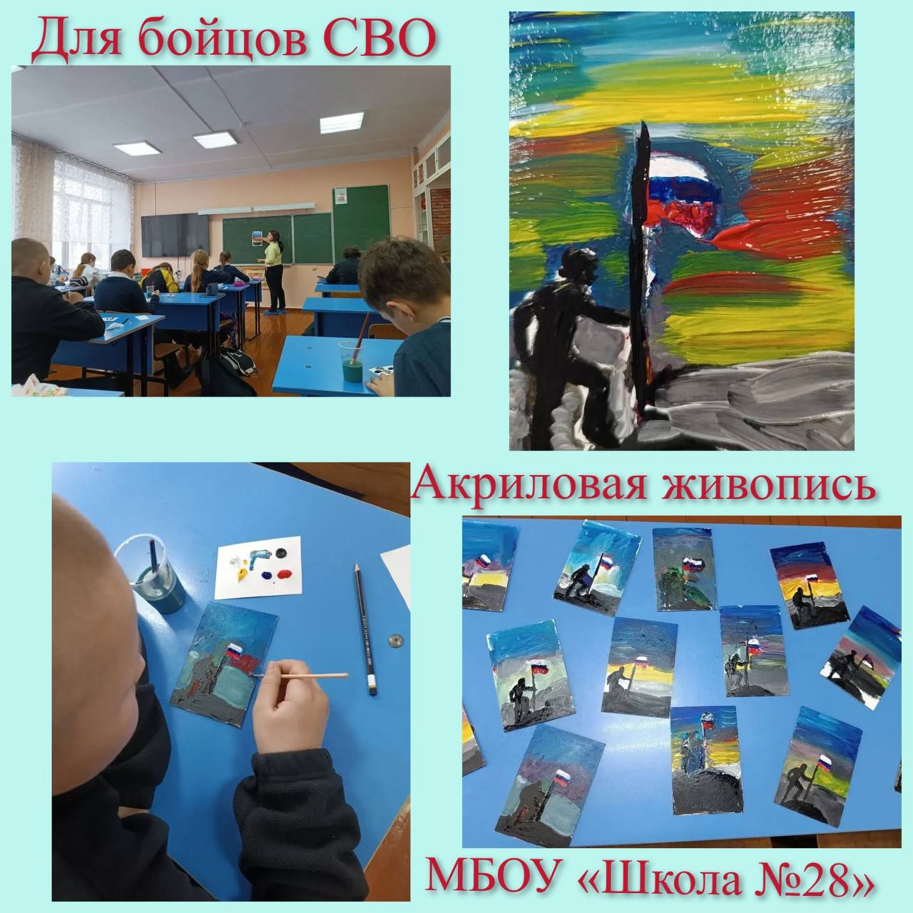 Сегодня в рамках программы «Пушкинская карта» в МБОУ «Школа №28» был проведен интересный мастер - класс «Акриловая живопись» , для бойцов СВО