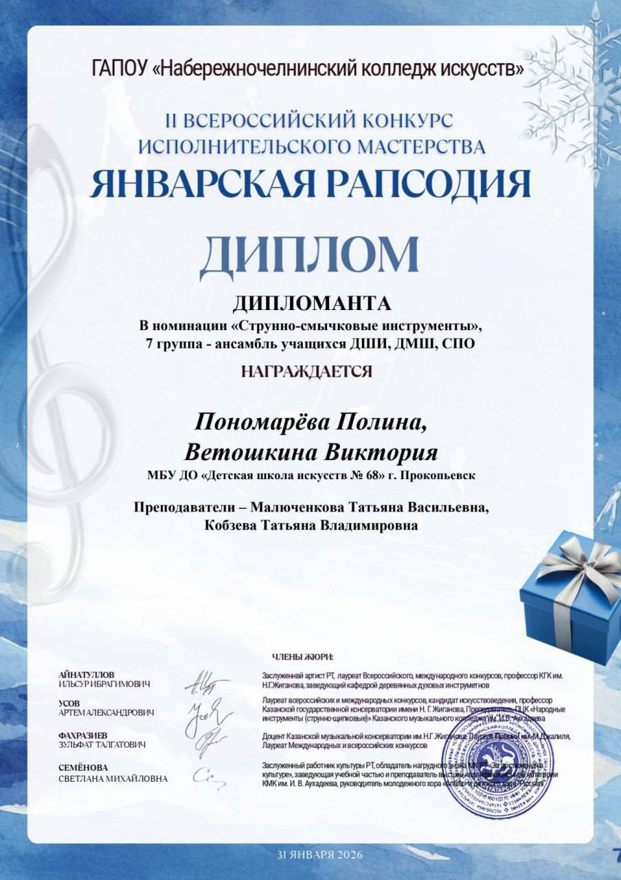 II Всероссийский конкурс исполнительского мастерства «Январская рапсодия».