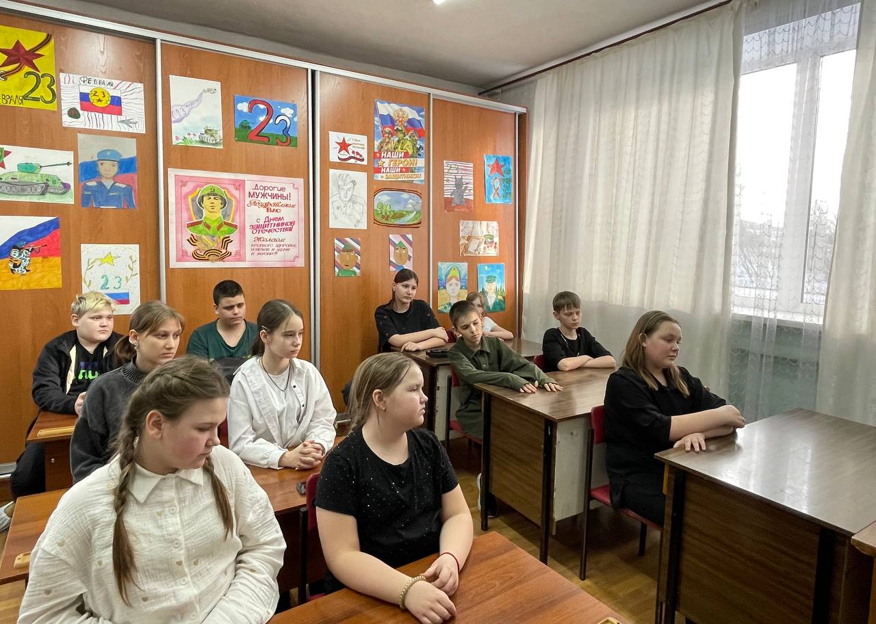 Посвящённый 80-летию Великой Победы. Учащиеся с вниманием слушали рассказы о героях Великой Отечественной войны: о лётчиках, которые сражались в небе, о солдатах, шедших в атаку с песней на устах, и о тружениках тыла, ковавших Победу, провела урок преподаватель Политова Ольга Николаевна.