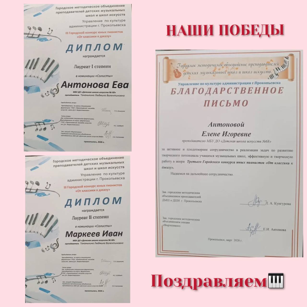 Благодарственным письмом отмечена работа в жюри - преподавателя «ДШИ № 68»
