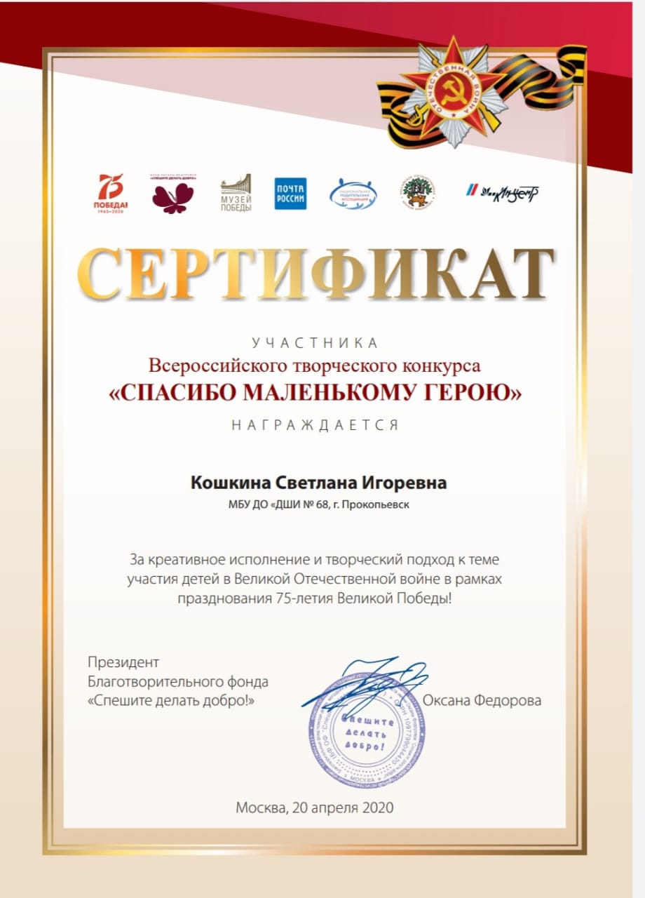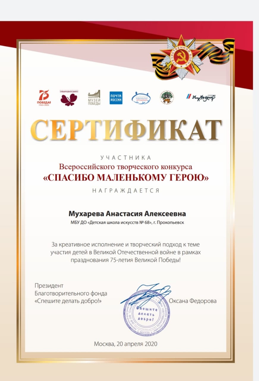 Всероссийский творческий конкурс, посвящён 75-летию Великой Победы.